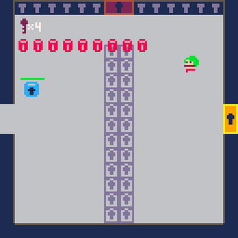 - Red anvils trade one key for one health, and purple anvils trade one health for one key